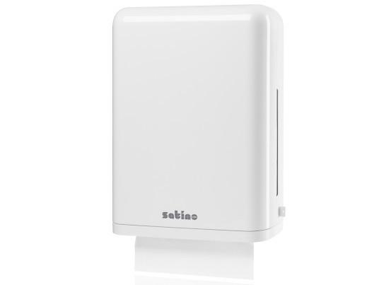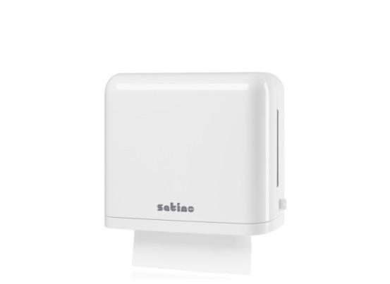 Selbst in Waschräumen mit wenig Platz findet der Satino Falthandtuch Spender die perfekte Nische. Mit seinem formschönen zeitlosen Design fügt er sich optisch überall ein. Unsere Falthandtuch-Spender Small und Large sind unschlagbar flexibel - individuell einstellbar in Blattbreite-/tiefe und somit für alle Falzarten geeignet.