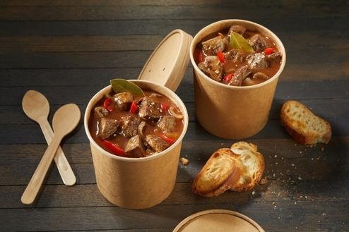 Die Allzwecklösung im natürlichen Design: Soup to go Becher aus natürlichem Kraftkarton eignen sich neben Suppe für veschiedenste Take-away-Gerichte. Egal ob heiß oder kalt - der festschließende Deckel sorgt für einen auslaufsicheren Transport.