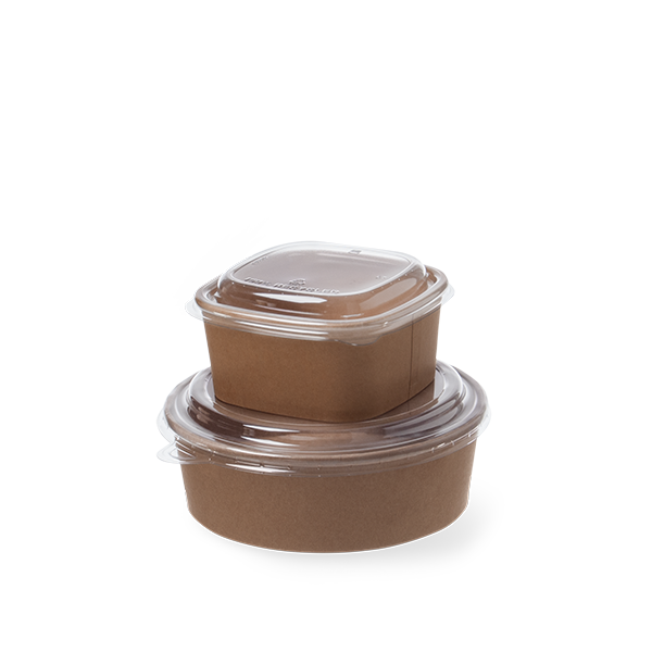 Salatschalen aus stabilem Kraftpapier eignen sich perfekt für den Salat To Go Verkauf. Durch die verwendete PLA-Beschichtung auf Pflanzenbasis bleibt die Schale, auch mit Sauce oder Dressing gefüllt, auslaufsicher.